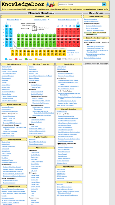 78%Our periodic table has over 25000 facts covering all chemical elements and spanning more than 130 quantities. Each table entry has a full citation identifying its source. Our units and constants handbook features descriptions of the 391 units and 74 constants supported by our unit conversion calculators.
