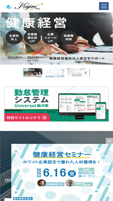 77%就業システム、勤怠システム、健康管理システムで働き方改革と健康経営を支援する勤次郎株式会社では、業務の合理化と労働生産性向上を支援するHRMクラウドソリューション「Universal 勤次郎」をご提供しています。健康管理システムと連動した総合HRMソリューションで、企業の業績向上をサポートいたします。