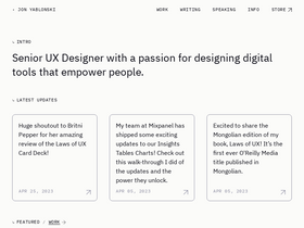 91%Senior Product Designer [@Mixpanel](https://mixpanel.com/home). Author of [Laws of UX](https://lawsofux.com/book/). Creator of [Humane by Design](https://humanebydesign.com/). Co-organizer of [IXD2](https://ixd2.org/).
