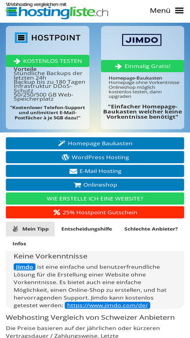 100%Unabhängiger Webhosting Vergleich der Schweiz. Mit vielen wertvollen Tipps und Erfahrungen zu Webhosting Anbietern und Homepage Baukasten.