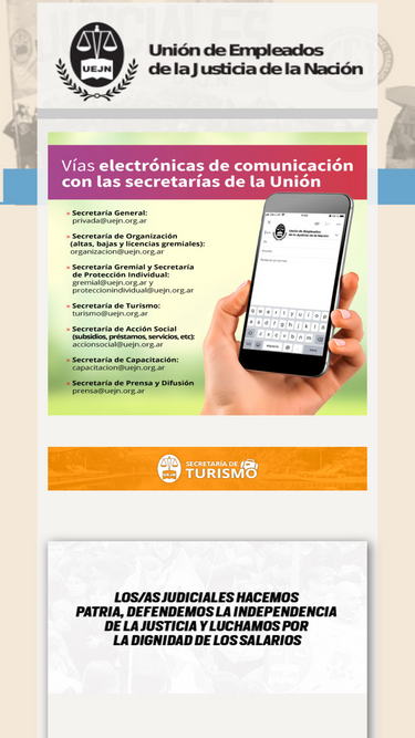 65%UEJN es el sindicato de trabajadores del Poder Judicial de Argentina. Con personería gremial desde 1971, defendemos derechos laborales y ofrecemos beneficios sociales, OSPJN, turismo y capacitación.
