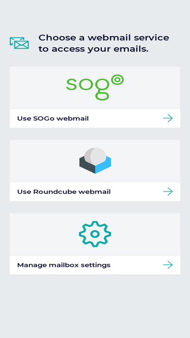 70%easily access your emails with our webmail services: sogo and roundcube.