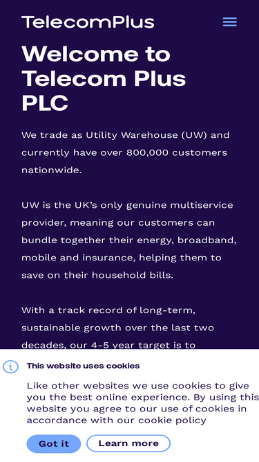 100%telecom plus plc trades as uw (utility warehouse) and is trusted by over a million households and small businesses nationwide.