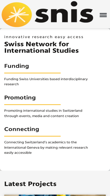 58%SNIS funds interdisciplinary research in global governance, health, climate, migration, rights & sustainability, connecting science with international policy.