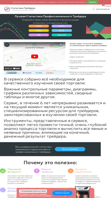 Онлайн сервис “Статистика трейдера” – умный и многофункциональный. Этот журнал сделок дает преимущество трейдера над собой и рынком. Позволяет видеть закономерности, делать выводы, тонко прорабатывать стратегии. Для трейдеров, которые четко знают чего хотят от своей профессии!
