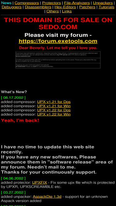 74%how to improve your cracking and programming skills?welcome to the exetools, almost the largest archive of cracking stuff in the internet.i have many tools, tutorials and sources, including softice (the best cracking tool on earth), w32dasm (a nice decompiler), and hiew, my favourite hexeditor. in the tutorials section you can find a great collection of +orc and tkc tutors.