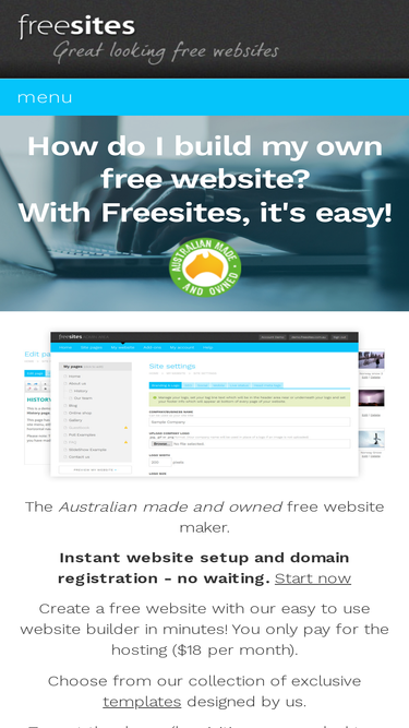 93%build your own website today! create your own online store, blog, gallery and more. aussie made freesites suits personal websites as well as australian business and shopping sites of all sizes.