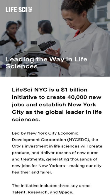 LifeSci NYC is a $1 billion initiative to create 40,000 new jobs and establish New York City as the global leader in life sciences.