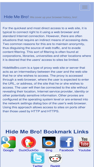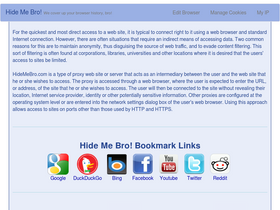 95%HideMeBro.com is a type of FREE proxy web site that acts as an intermediary between the user and the site that he or she wishes to access.