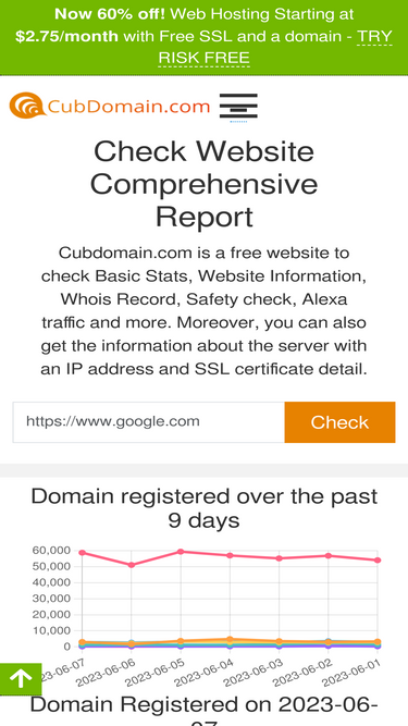 cubdomain is a free website to check site information, whois detail and more. moreover, you can also check the server with an ip address detail of website.
