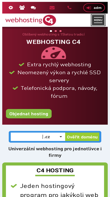 93%webhosting za 100 kč měsíčně s doménou v ceně. 20 gb, php, mysql, administrační systém.
