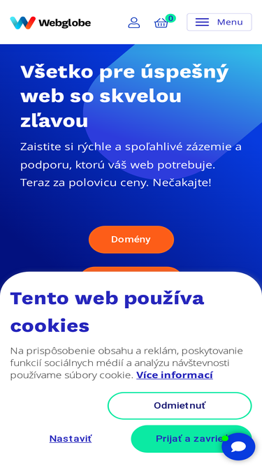 56%Získajte svoj vlastný kúsok internetu. Zaregistrujte si doménu a zaobstarajte webhosting alebo rovno server pri Webglobe. Naša 5⭐ podpora je vám k dispozícii.