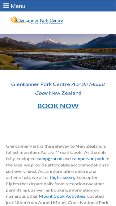 78%glentanner park centre has budget accommodation, camping, visitor information and bookings for mt cook adventure activities, glacier trips & flightseeing.
