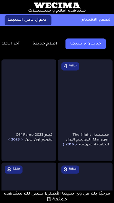 81%WECIMA مشاهدة افلام و مسلسلات. تصفح الأقسام. افلام · افلام اجنبي · افلام عربى · افلام هندى · افلام اسيوية · افلام تركى · افلام انمي · افلام مدبلجة · مسلسلات