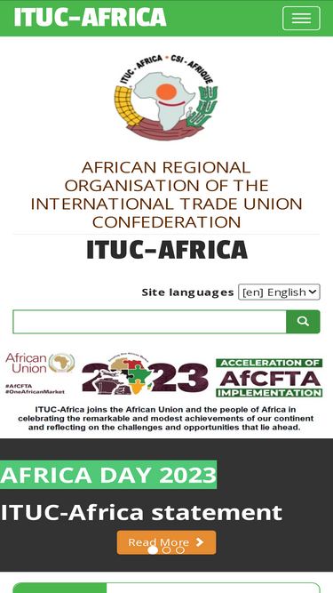 76%is a pan-African trade union organisation created in November 2007 following the merger of two former African trade union organisations, namely ICFTU-Afro and DOAWTU. Our Mission : represent workers in Africa through unity, advocacy, and capacity development to achieve decent work and equality for social justice. ITUC AFRICA IS A CONTINENTAL COVERAGE NETWORK