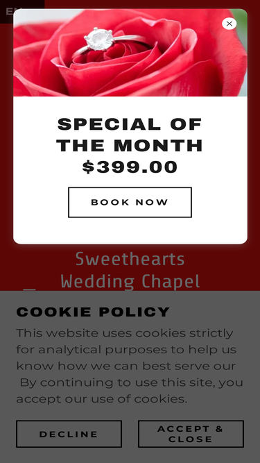 Celebrate your special day at Sweethearts Chapel. Offering intimate wedding venue services and tailored ceremony packages in a romantic setting.