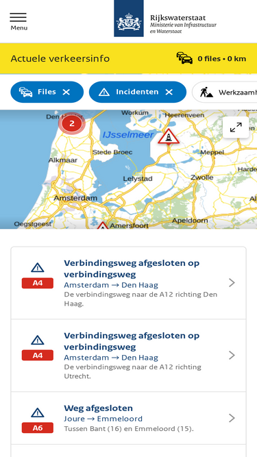 84%actuele verkeersinformatie in kaart en/of op je eigen route(s). een overzicht van alle verkeersbelemmeringen in nederland.