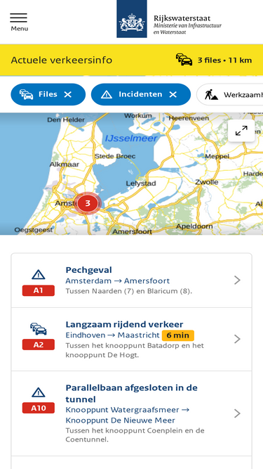 100%bekijk alle ontwikkelingen in het verkeer. rechtstreeks van rijkswaterstaat. 24 uur per dag, 7 dagen per week actuele informatie. files, ongelukken en meer.