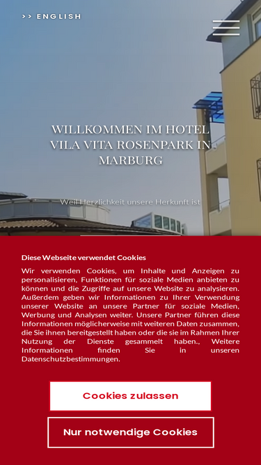 100%Unser VILA VITA Rosenpark befindet sich im Zentrum Marburgs auf den Lahnauen. Der Bahnhof ist fußläufig erreichbar und ruhige Spazierwege schließen sich direkt an unser Hotelgelände an.