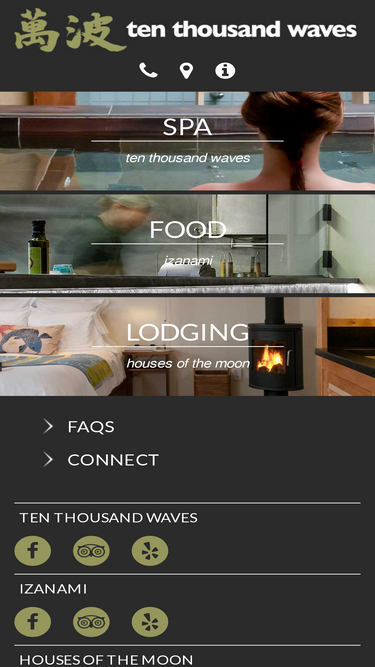 92%ten thousand waves is inspired by the great japanese mountain hot spring resorts. our resort includes our legendary spa, restaurant izanami and lodging from houses of the moon. ten minutes from downtown santa fe, new mexico but only minutes from the national forest, there is nothing quite like this on the north american continent.