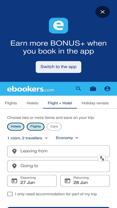 100%We have made the difficult decision to retire ebookers and its BONUS+ program in the United Kingdom. On 4 September 2024, the ebookers website, app, BONUS+ program and its benefits are ending in the UK. Rest assured, any existing and upcoming reservations and trips will not be disrupted, and we will honor your loyalty through the One Key™ rewards program, coming soon to Expedia®, Hotels.com™, and Vrbo™ in the UK.