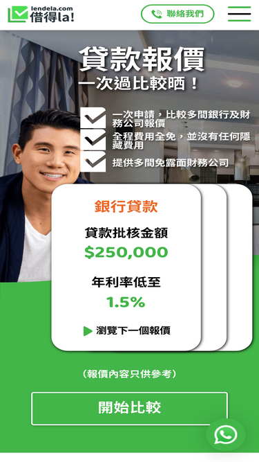 80%lendela 借得la是全港唯一網上貸款配對平台,填寫一份申請表即可獲得多間銀行及財務公司為你度身訂造的貸款報價,讓借貸變得更輕鬆方便!