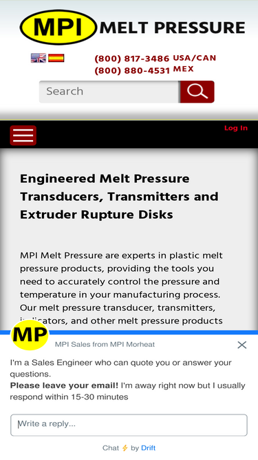 100%mpi melt pressure is an expert in plastic melt pressure products. we provide the best performing, most cost-competitive melt pressure transducers, transmitters, and extruder rupture disks available. we are a customer needs-driven manufacturer, providing unparalleled technical support. contact us today to learn more.