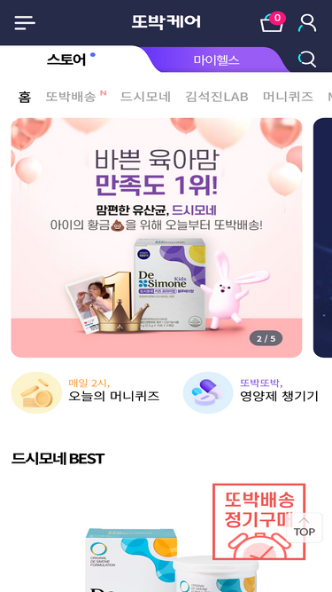 89%국내 1위 보장균수 4,500억 프리미엄 프로바이오틱스 드시모네. 첫 구매 할인, 추가 적립금, 경품 이벤트까지 공식몰만의 특별한 혜택을 만나보세요