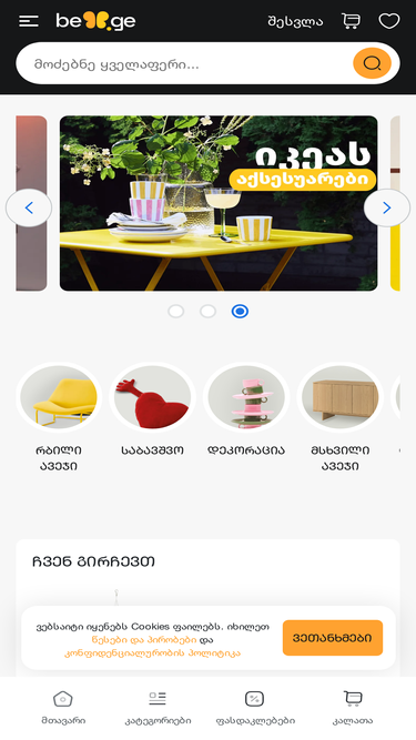 99%შენთვის სასურველი ნივთების ყიდვა შესაძლებელია ონლაინ მაღაზია Be.ge-ზე - იშოპინგე სახლიდან გაუსვლელად და ისარგებლე მიტანის სერვისით.