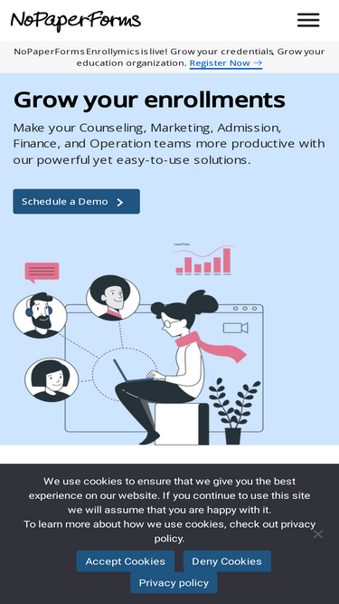 85%NoPaperForms is India’s largest Vertical SaaS + Embedded Payments and Financing platform empowering educational organizations to drive revenue growth and improve operational efficiency