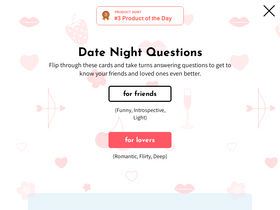 According to Similarweb data of monthly visits, werenotreallystrangers.com’s top competitor in February 2026 is tabletopics.com. werenotreallystrangers.com 2nd most similar site is datenightquestions.com, and closing off the top 3 is deepertalk.com.