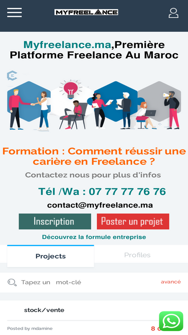 99%MYFREELANCE : Le premier site freelance et freelancers au Maroc pour trouver les meilleurs talents. Connectez-vous avec des experts qualifiés pour vos projets