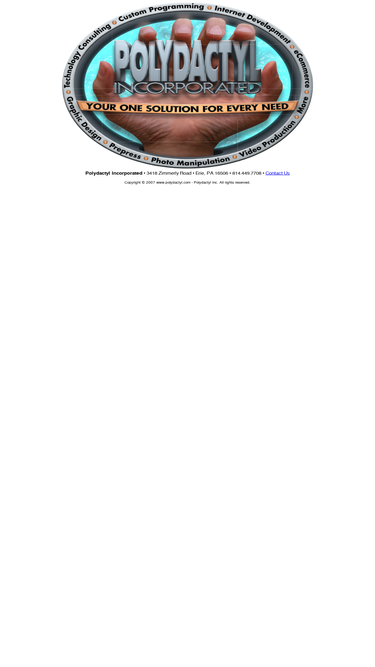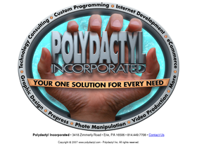 100%polydactyl incorporated - your one solution for every need. our capabilities include: technology consulting, custom programming, internet development, ecommerce, graphic design, prepress, photo manipulation, video production, and more.