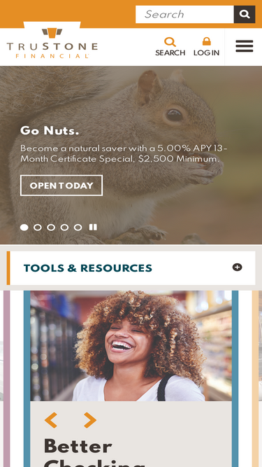 88%Manage your money on the go with the TruStone mobile banking app, Mobile Deposit and more.