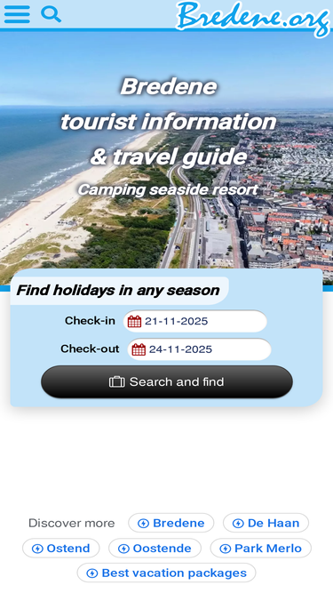 84%bredene.org is the best website that offers you free information on everything that bredene has to offer. moreover, we offer objective information, because this website is not part of a municipality, travel agent or tour operator. bredene.org also helps you find the most suitable hotel, guesthouse, bed & breakfast, apartment, vacation home, bungalow or camping. on our website you will also find information about the area, events, sights, weather, beaches, attractions and so on, in and around bredene.