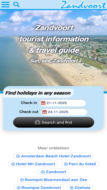 84%zandvoort.biz is the best website that offers you free information on everything that zandvoort has to offer. moreover, we offer objective information, because this website is not part of a municipality, travel agent or tour operator. zandvoort.biz also helps you find the most suitable hotel, guesthouse, bed & breakfast, apartment, vacation home, bungalow or camping. on our website you will also find information about the area, events, sights, weather, beaches, attractions and so on, in and around zandvoort.