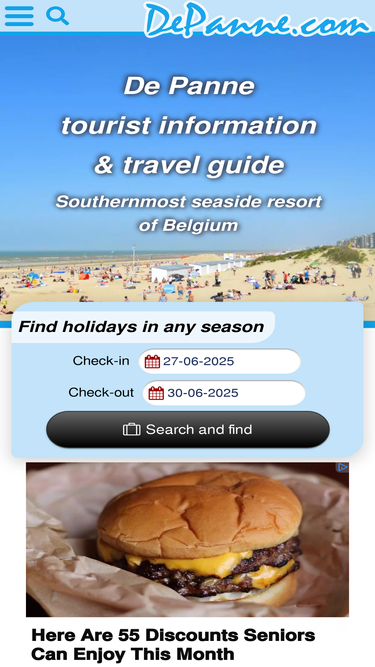 84%depanne.com is the best website that offers you free information on everything that de panne has to offer. moreover, we offer objective information, because this website is not part of a municipality, travel agent or tour operator. depanne.com also helps you find the most suitable hotel, guesthouse, bed & breakfast, apartment, vacation home, bungalow or camping. on our website you will also find information about the area, events, sights, weather, beaches, attractions and so on, in and around de panne.