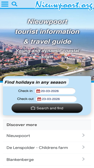 nieuwpoort.org is the best website that offers you free information on everything that nieuwpoort has to offer. moreover, we offer objective information, because this website is not part of a municipality, travel agent or tour operator. nieuwpoort.org also helps you find the most suitable hotel, guesthouse, bed & breakfast, apartment, vacation home, bungalow or camping. on our website you will also find information about the area, events, sights, weather, beaches, attractions and so on, in and around nieuwpoort.