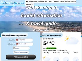 84%scheveningen.com is the best website that offers you free information on everything that scheveningen has to offer. moreover, we offer objective information, because this website is not part of a municipality, travel agent or tour operator. scheveningen.com also helps you find the most suitable hotel, guesthouse, bed & breakfast, apartment, vacation home, bungalow or camping. on our website you will also find information about the area, events, sights, weather, beaches, attractions and so on, in and around scheveningen.