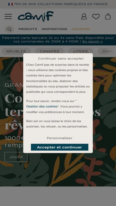 79%Vous souhaitez mieux aménager votre intérieur ? Découvrez l'éco-conception Camif : beau mobilier, literie de qualité et déco.