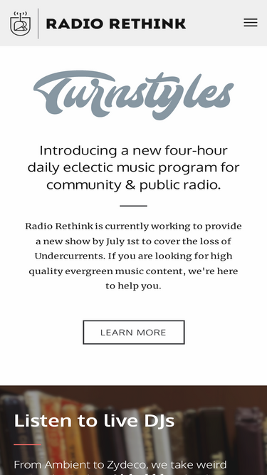 hi! we're radio rethink. we believe community and public radio present some of the greatest music and stories in the world. our tools help stations grow the largest audience possible. a powerful new ios app for community & public radio. built from the core of our airpocket web-based player, the radio rethink app is a new resource for community and public radio listeners. because we collaborate directly with over 70+ participating independent stations your listening exp