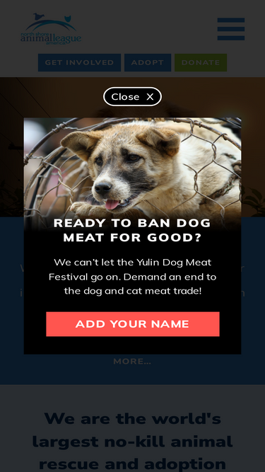 87%We are the world's largest and longest running no-kill animal rescue and adoption organization. Since 1944, North Shore Animal League America has been saving the lives of defenseless dogs, cats, puppies, and kittens — over 1,000,000 to date.