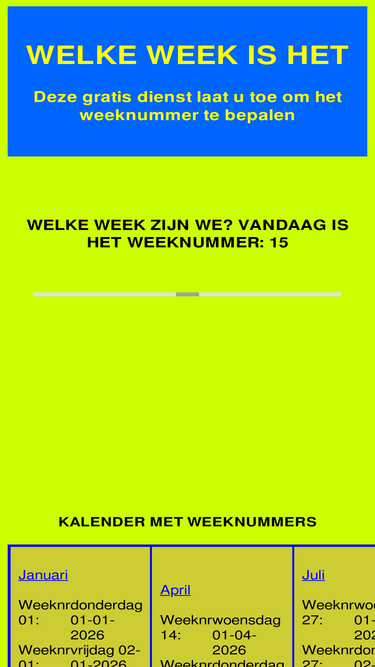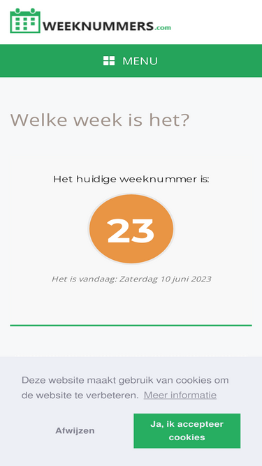 87%weeknummers. wat is het huidige weeknummer? bekijk op deze website het huidige weeknummer, kalenders, weeknummeroverzichten en meer!
