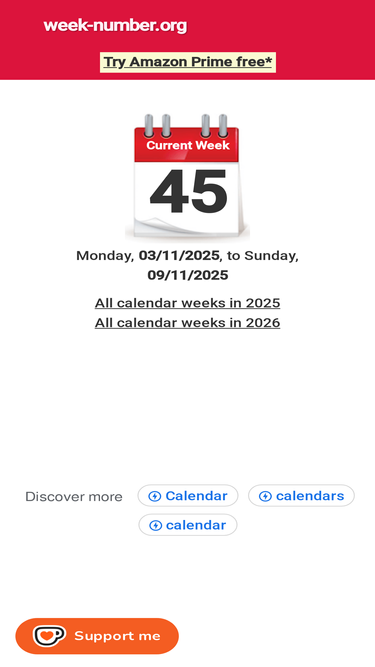 According to Similarweb data of monthly visits, whatweekisit.org’s top competitor in March 2026 is calendar-week.org. whatweekisit.org 2nd most similar site is weeknumber.com, and closing off the top 3 is week-number.org.