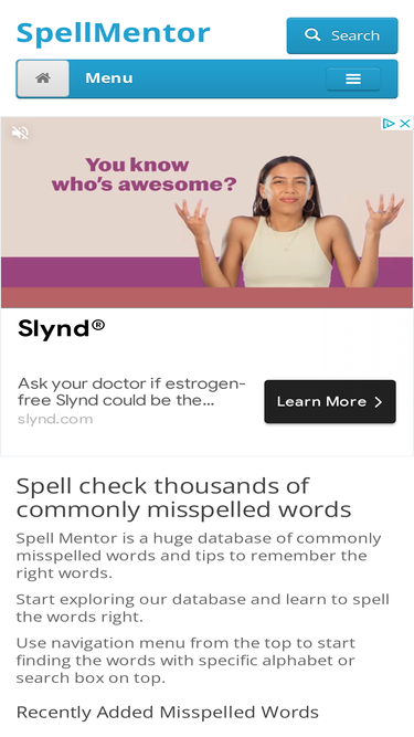 88%spellmentor is a huge database of more than 100 k most misspelled words based on us english and learn tips and tricks to spell it right.