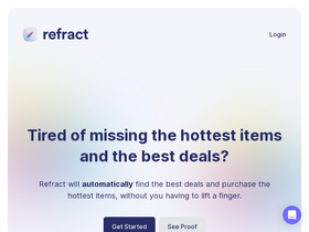 95%Tired of missing the hottest items and the best deals? Refract will automatically find the best deals and purchase the hottest items, without you having to lift a finger.