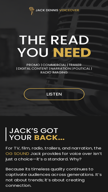 home page of jack dennis voiceovers. voice artist. voice overs. voiceovers. narration. commercials. promos. trailers. voice actor. voice talent.