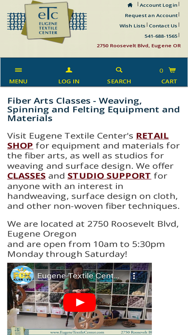 100%eugene textile center provides a retail shop selling equipment and materials for the fiber arts, as well as a comprehensive studio environment. etc offers classes and studio support to individuals in the community with an interest in handweaving, surface