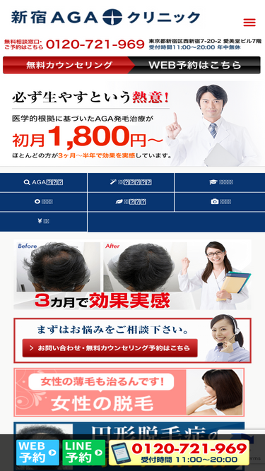 100%駅前agaクリニックは、初月1800円~の通いやすい価格で、aga.faga.円形脱毛症など、毛髪に関するあらゆる悩みに結果でお答えする毛髪治療に特化したクリニックです。東京新宿、東京北千住、横浜、新潟、金沢、三重四日市、大阪梅田、京都烏丸、神戸三宮、姫路、岡山、広島、鹿児島。全国14院グループで安心のサポート。