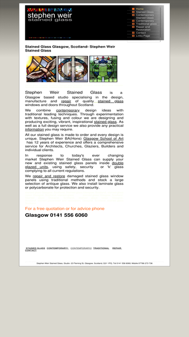 100%stephen weir stained glass is a glasgow based studio specialising in the design, manufacture and repair of quality stained glass, painted glass & fused glass windows all over scotland.